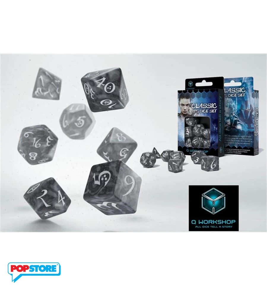 Scle78 – Set 7 Dadi Classici Fumo/Bianco – 55099
