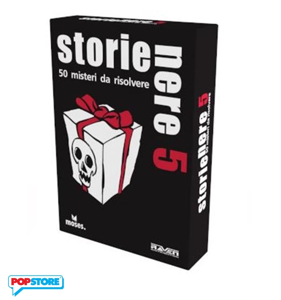Le Storie Nere sono racconti di complicati e macabri misteri da risolvere. Le Storie Nere 5 vengono presentate per la prima volta in Italia, 50 casi completamente nuovi e mai visti prima! Cosa stai aspettando? Spremiti le meningi e ricostruisci l’accaduto pezzo per pezzo aiutandoti con le domande e i suggerimenti, da solo o in compagnia. Un raccapricciante gioco a enigmi che non potrà mancare nelle occasioni di ritrovo! Storie Nere conquisterà tutti, appassionati di gioco o novizi che siano! Durata: variabile Età: 12+ Giocatori: 2+